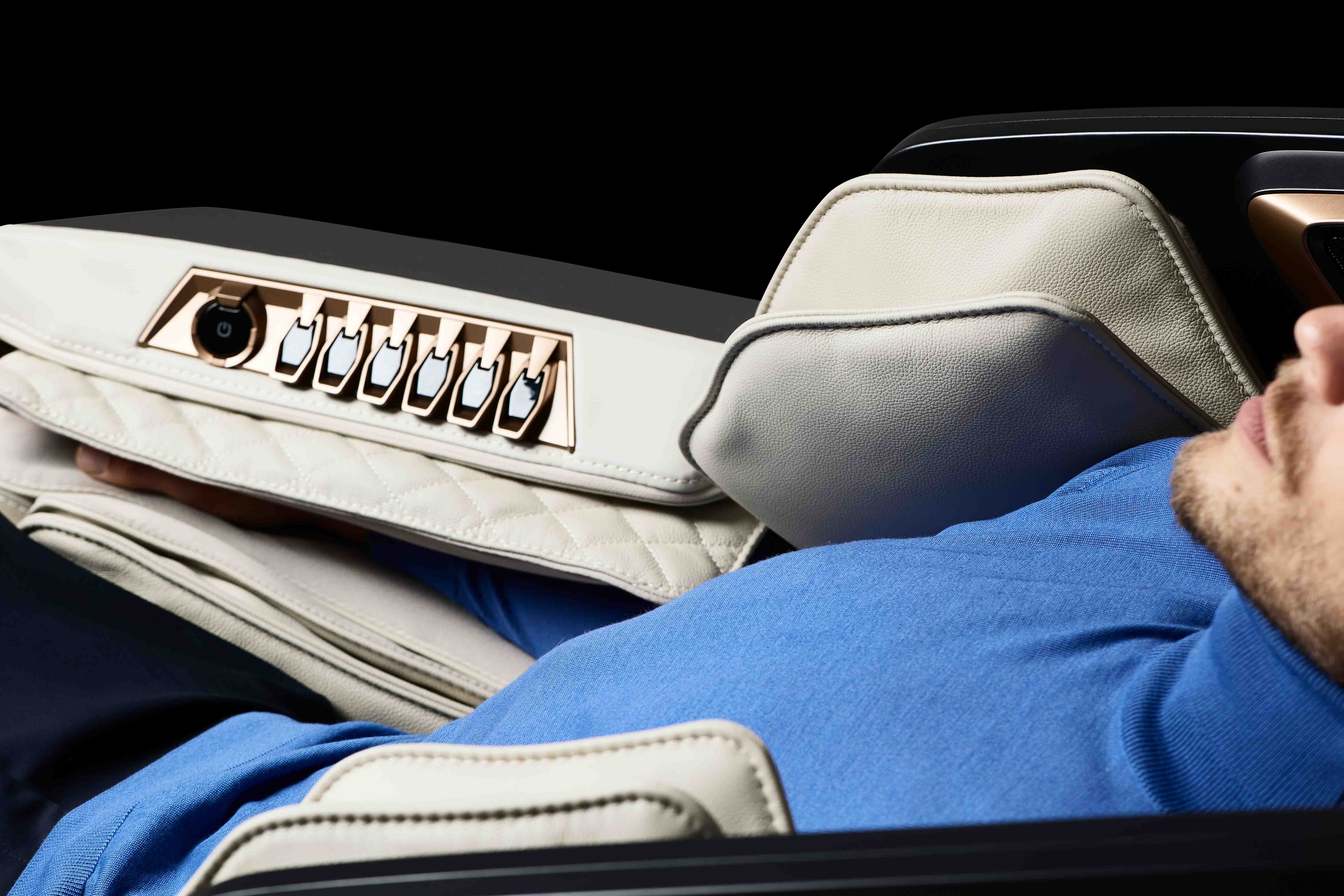 Active leg stretching with dedicated attention to the hip area, delivered through a massage that combines pressure intensity with variable Zero Gravity positioning. The sensation is exceptional because it enables deep relaxation and complete release of tension in the lower body. The floating-like finish brings an overall comfort that is difficult to achieve by other means.